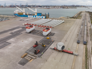Livraison des composants des éoliennes sur le quai Gloria