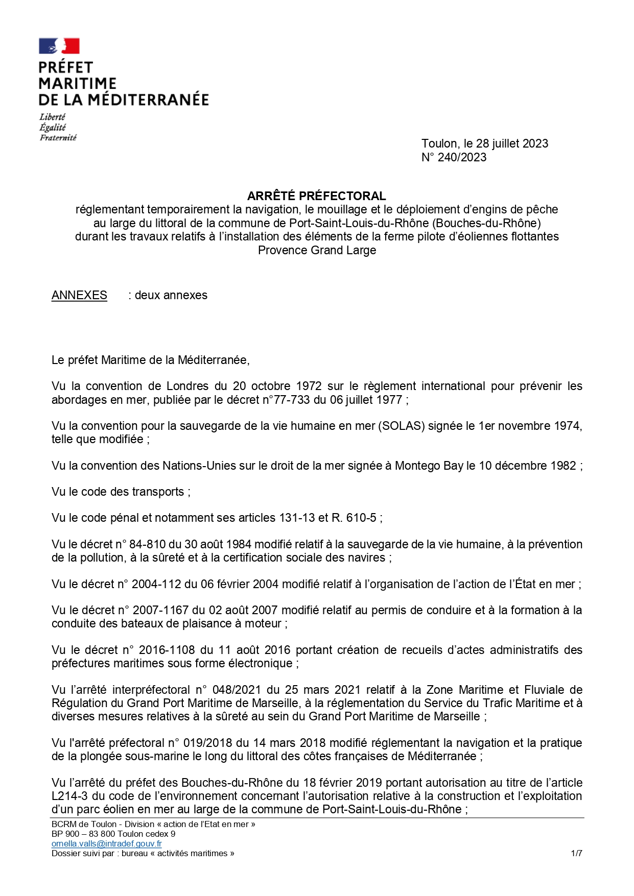 Arrêté préfectoral N°241/2023