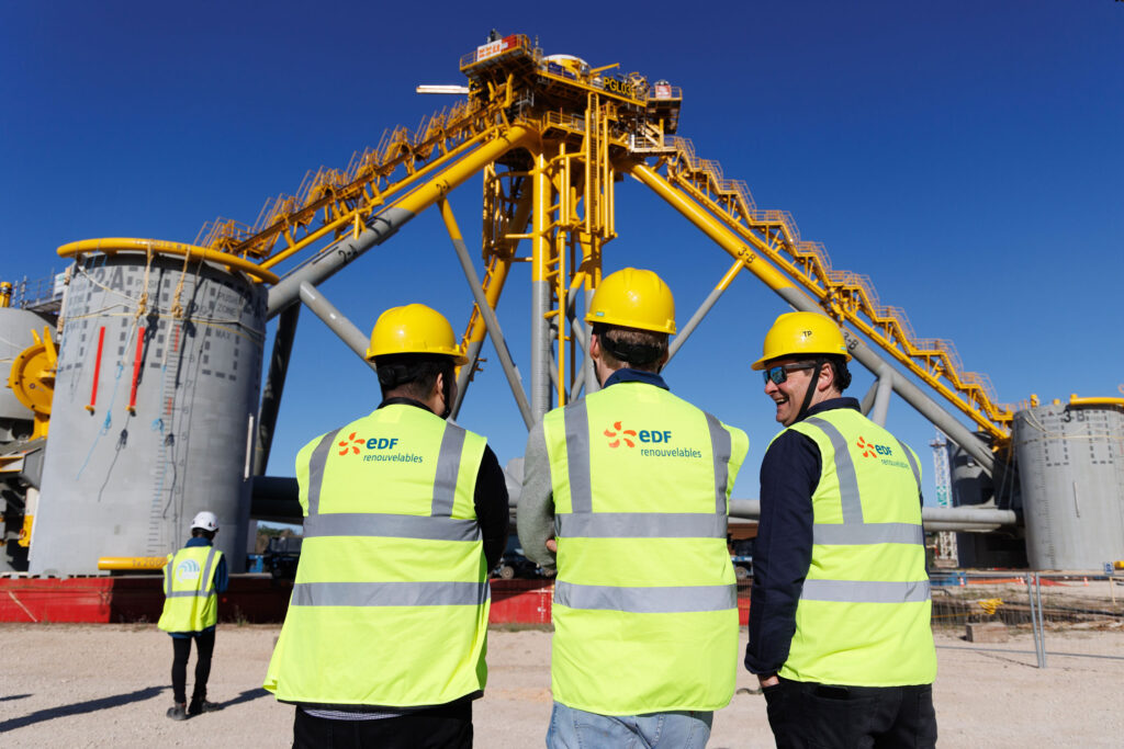 Véritable prouesse industrielle, le chantier d’assemblage des flotteurs a mobilisé entre 150 et 200 personnes à son pic, soit environ 150 000 heures de travail pour préparer, équiper, et assembler les trois flotteurs. Situé sur le site d’Eiffage Métal à Fos-sur-Mer, le chantier a permis de redynamiser les entreprises locales historiques tout en capitalisant sur leur expérience industrielle et offshore.