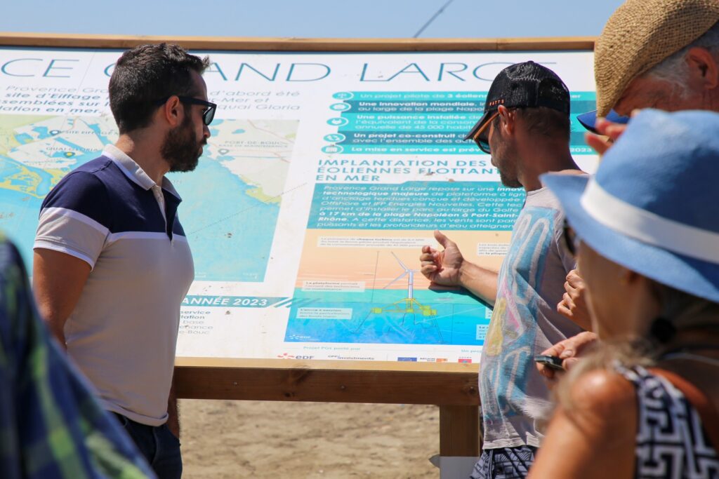 Le dialogue territorial s’est maintenu durant la phase de construction du parc. L’équipe projet est allée à la rencontre du public afin de présenter le projet, répondre aux questions, et dialoguer avec le territoire. Parmi les actions menées, Provence Grand Large a organisé différentes rencontres locales avec les habitants sur le marché de Fos ou encore sur le port de plaisance. Provence Grand Large a également participé à plusieurs reprises au Festival de la Camargue en tant que partenaire. L’occasion de proposer des visites du site Eiffage Métal.