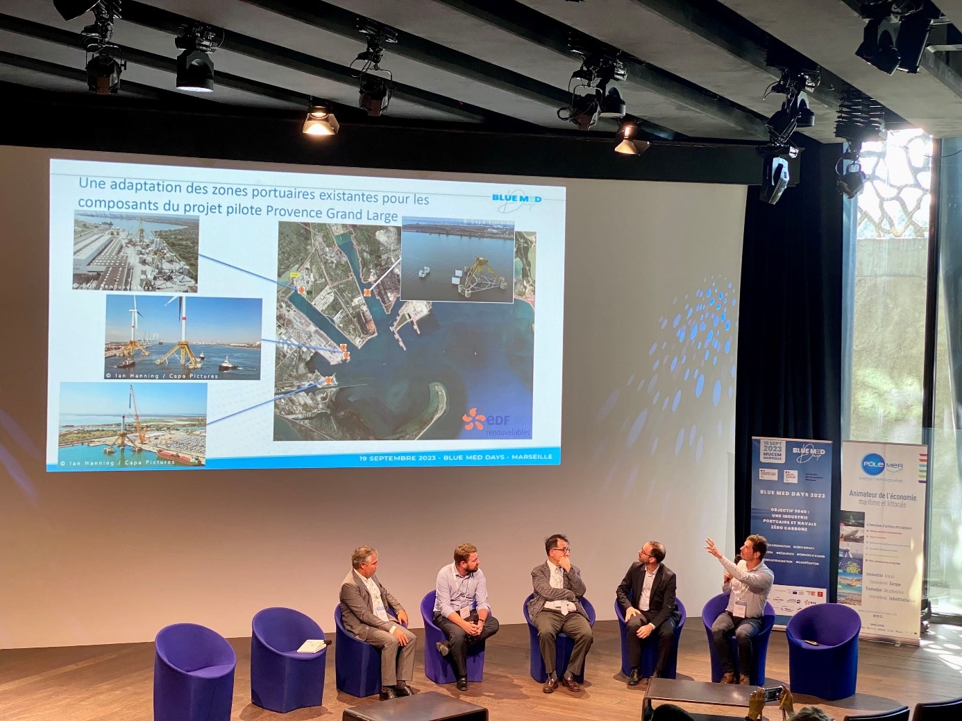 EDF Renouvelables est intervenu sur une table ronde traitant des grands projets portuaires, aux côtés des représentants des ports de Marseille-Fos, Port La Nouvelle et Toulon. Cette table ronde fut l’occasion pour EDF Renouvelables de présenter l’avancement du projet pilote Provence Grand Large et la manière dont les infrastructures portuaires ont été utilisées, mais aussi de discuter des enjeux portuaires pour les futurs projets, et notamment celui de l’appel d’offres n°6 en Méditerranée sur lequel EDF Renouvelables se positionne avec son partenaire Maple Power.