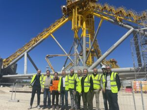 Le maire et ses équipes se sont d’abord rendu sur le chantier d’assemblage des flotteurs d’Eiffage Métal ont pu découvrir les flotteurs dont l’assemblage touche à sa fin pour une mise à l’eau dans les prochains jours. Ils se sont ensuite rendus sur le quai Gloria pour découvrir les composants d’éoliennes Siemens Gamesa Renewable Energy dans l’attente des opérations d’intégrations des éoliennes sur les flotteurs qui se dérouleront au début de l’été.